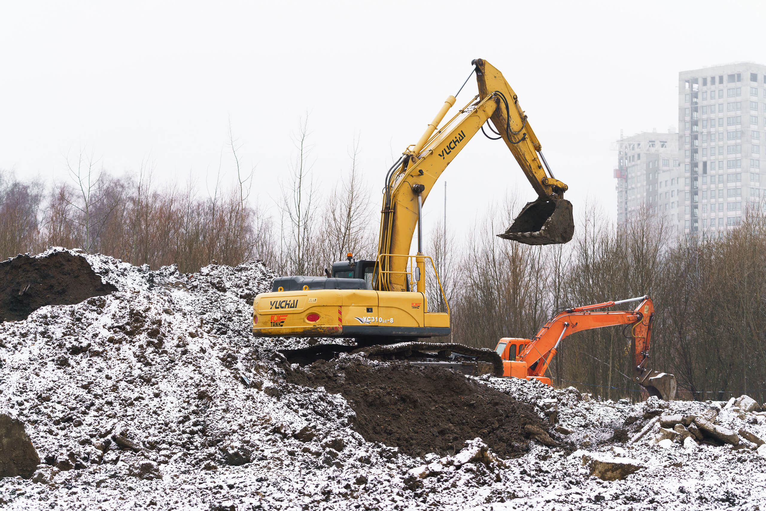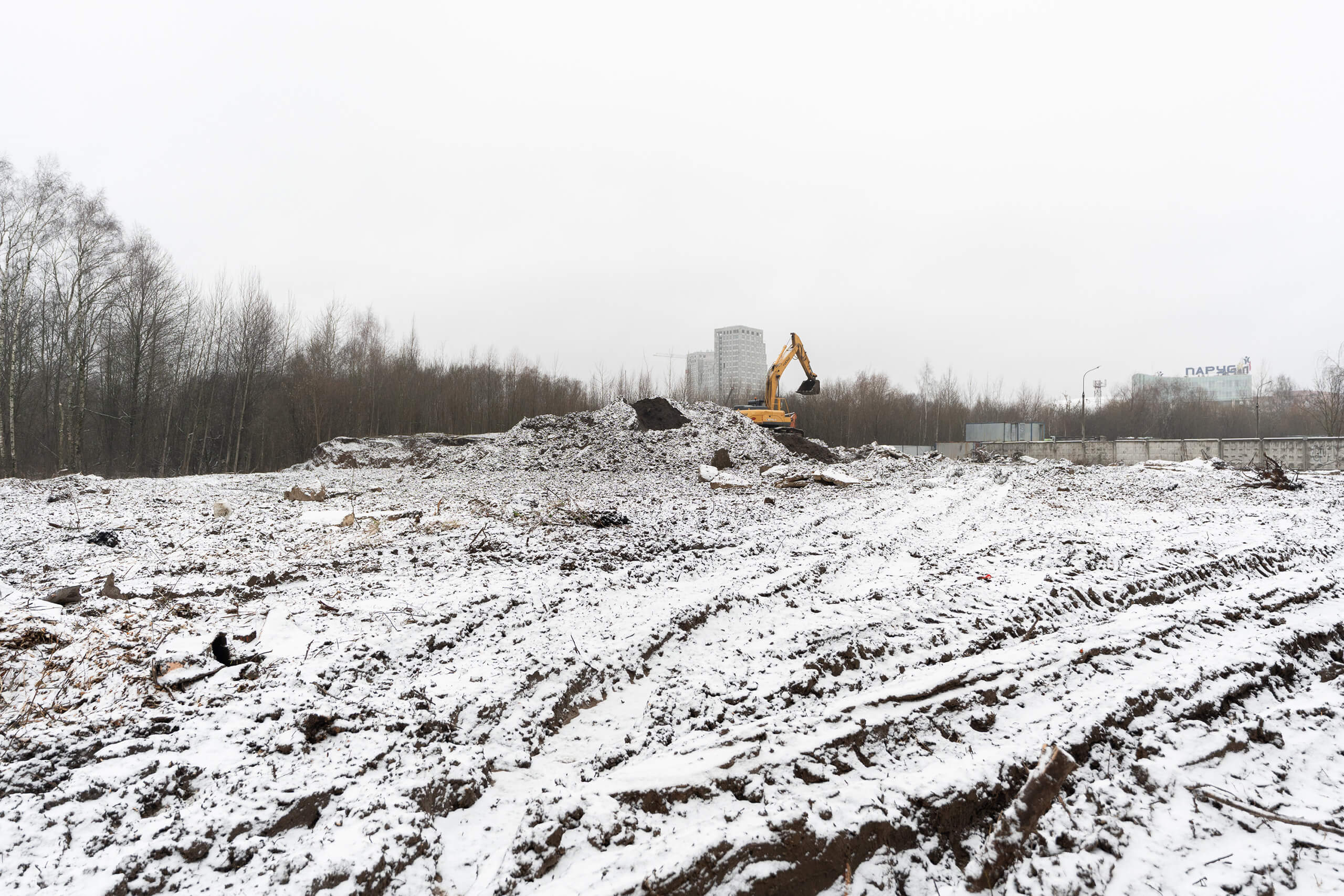 На стройплощадке комплексной жилой застройки с объектами социального и общественного назначения, расположенных по адресу: Московская область, г. Химки, Куркинское шоссе вл.15 продолжаются работы подготовительного этапа. Здесь трудятся 12 специалистов, из техники задействовано: экскаватор, трактор, манипулятор и автокран.